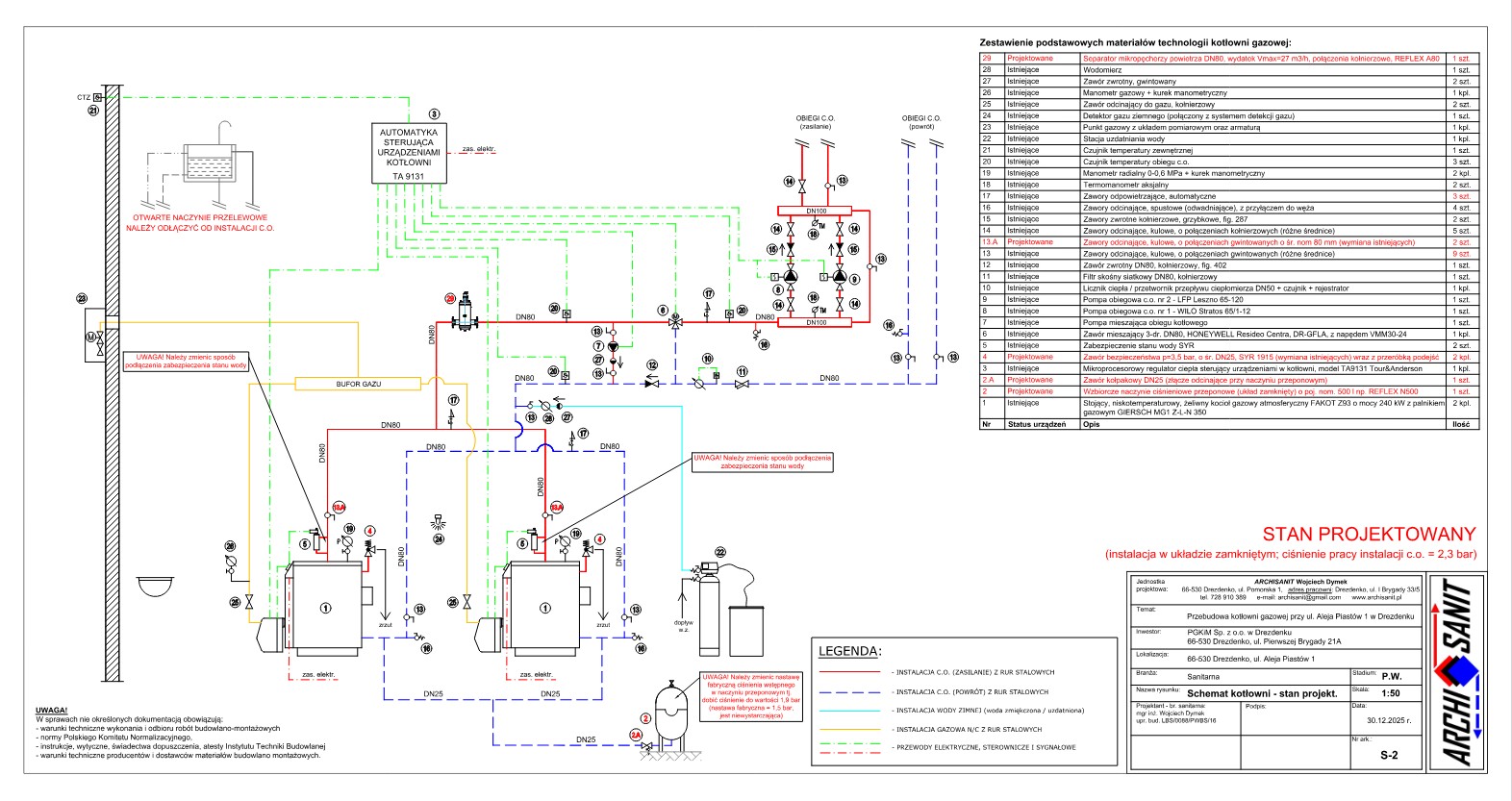 Projekt przebudowy armatury i osprzętu w kotłowni gazowej o mocy 480 kW, przy ul. Aleja Piastów w Drezdenku